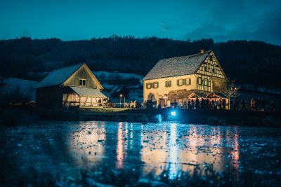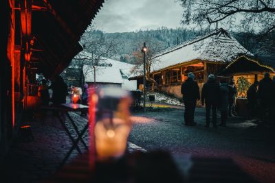 Anstelle eines klassischen Marktes taucht das Schwarzwälder Freilichtmuseum Vogtsbauernhof in Gutach die Schwarzwälder Häuserlandschaft in kunstvolles Licht. Auf dem sieben Hektar großen Museumsgelände verteilen sich rund 40 Hütten und Stände mit traditionellem Handwerk und heimischen Produkten. Die imposanten Schwarzwaldhöfe fügen sich so zu einem abendlichen Weihnachtsdorf, das seine Gäste zum Flanieren einlädt.