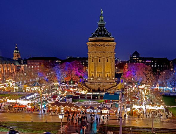 Am Montag, 24. November, beginnt der Mannheimer Weihnachtsmarkt am Wasserturm – Rund 160 Hütten – Täglich Bühnenprogramm – Sonderstand „Informieren und Helfen“ zugunsten sozialer Projekte