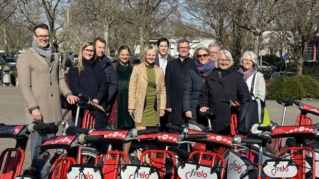 „Bad Krozingen verfügt über große Einrichtungen, wie u.a. das Herzzentrum, die von Mitarbeitenden und Besuchern erreicht werden müssen, von denen viele mit der Bahn nach Bad Krozingen kommen. Deshalb haben wir uns bereits im Jahr 2020 Gedan-ken über alternative Mobilitätskonzepte gemacht, mit denen wir gerade für diese Ziel-gruppe die Mobilität in unserer Stadt erleichtern und damit auch die Attraktivität von Bad Krozingen als Standort erhöhen können,“ erklärte Oberbürgermeister Volker Kieber die Gründe, die zur Teilnahme am Fahrradvermietsystem Frelo geführt hätten. Darüber hin-aus habe man mit dem Angebot der Frelos auch einen weiteren Baustein für eine klima-freundliche und damit nachhaltige Mobilität in der Stadt schaffen wollen. Dabei betonte das Stadtoberhaupt, dass eine Mobilitätswende nur gemeinsam erreicht werden könne, weshalb er sich auch freue, dass mit der Beteiligung von insgesamt 19 Gemeinden an dem Frelo-Projekt in den Landkreisen Breisgau-Hochschwarzwald und Emmendingen ab 2026 zum ersten Mal eine stadt- und landkreisübergreifende Initiative an den Start gehen wird. Er hoffe zudem, dass sich noch mehr Kommunen diesem Projekt anschlie-ßen werden, zumal sich erfreulicherweise auch die ursprünglich kalkulierten jährlichen Betriebskosten von rund 64.000 Euro um die Hälfte reduziert hätten, wie er mitteilen konnte.
