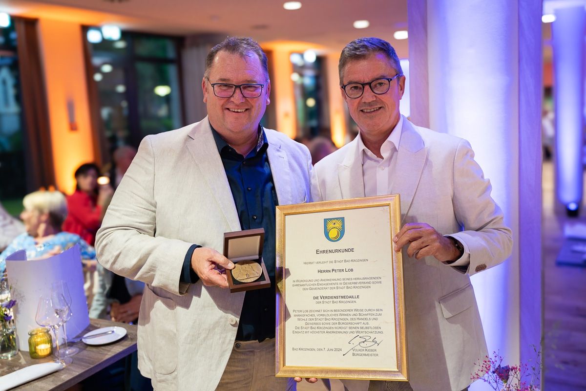 Am vergangenen Freitag feierte der Bad Krozinger Gewerbeverband mit seinen Mitgliedern und zahlreichen Gästen sein 40-jähriges Bestehen im neuen Nouri-Hotel an der Vita-Classica Therme. Ein passender Anlass, um Peter Lob, der seit mehr als zehn Jahren Vorsitzender des Gewerbeverbandes ist, für sein großartiges Engagement für die Stadt zu danken und ihm die Verdienstmedaille der Stadt Bad Krozingen zu verleihen.