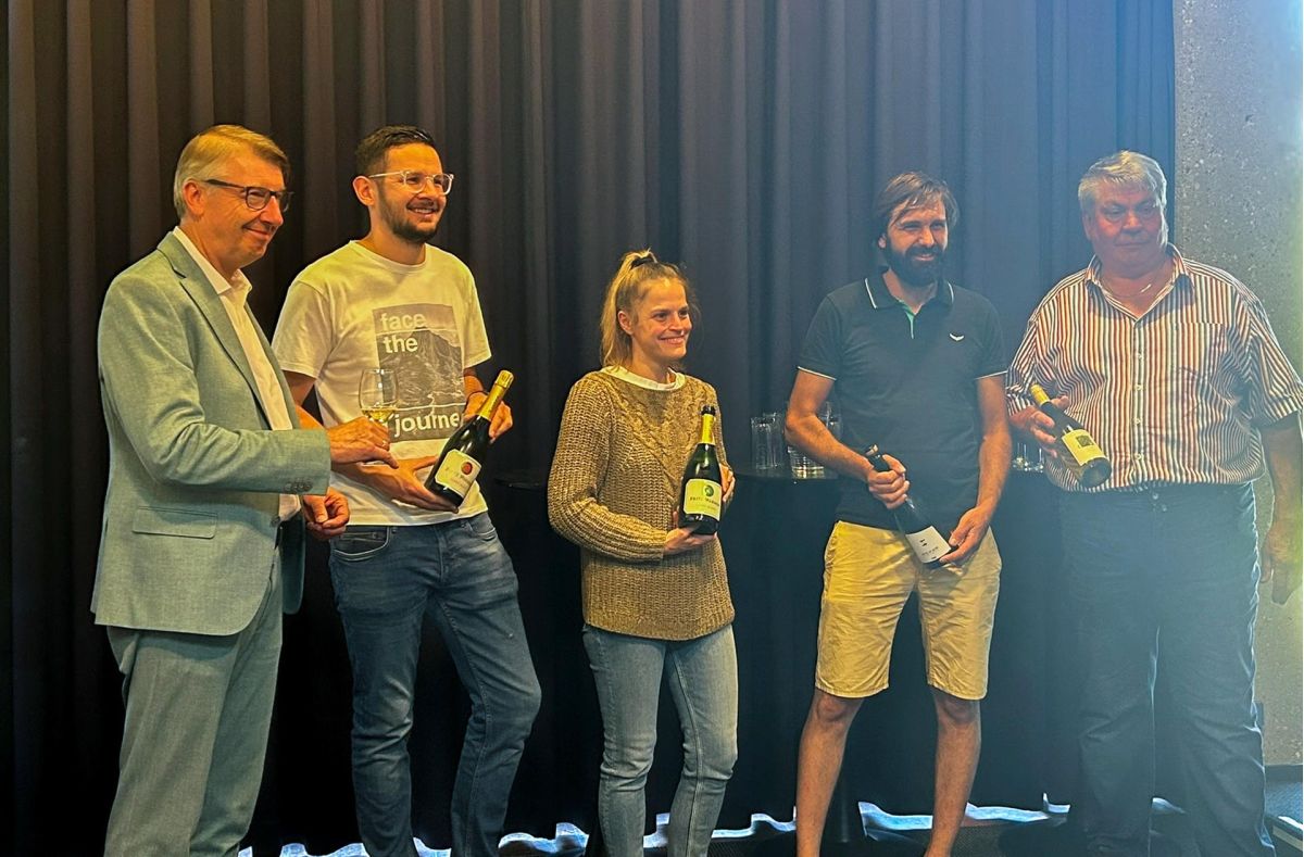 Rolf Rubsamen (Geschäftsführer Kur & Bäder GmbH Bad Krozingen), Felix und Christin Waßmer (Weingut Fritz Waßmer), Felix Scherer (Weingut Scherzer & Zimmer) und Hugo Glöckner von gleichnamigem Weingut.