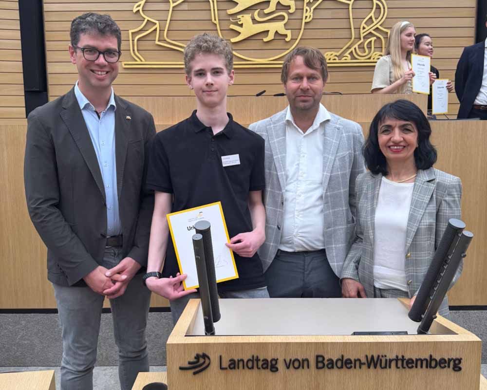 Baden-Baden. Großer Erfolg für das Markgraf-Ludwig-Gymnasium (MLG) in Baden-Baden: Lukas Kühnle, Schüler der Klasse 10c, wurde beim 67. Schülerwettbewerb des Landtags von Baden-Württemberg mit einem Ersten Preis ausgezeichnet.