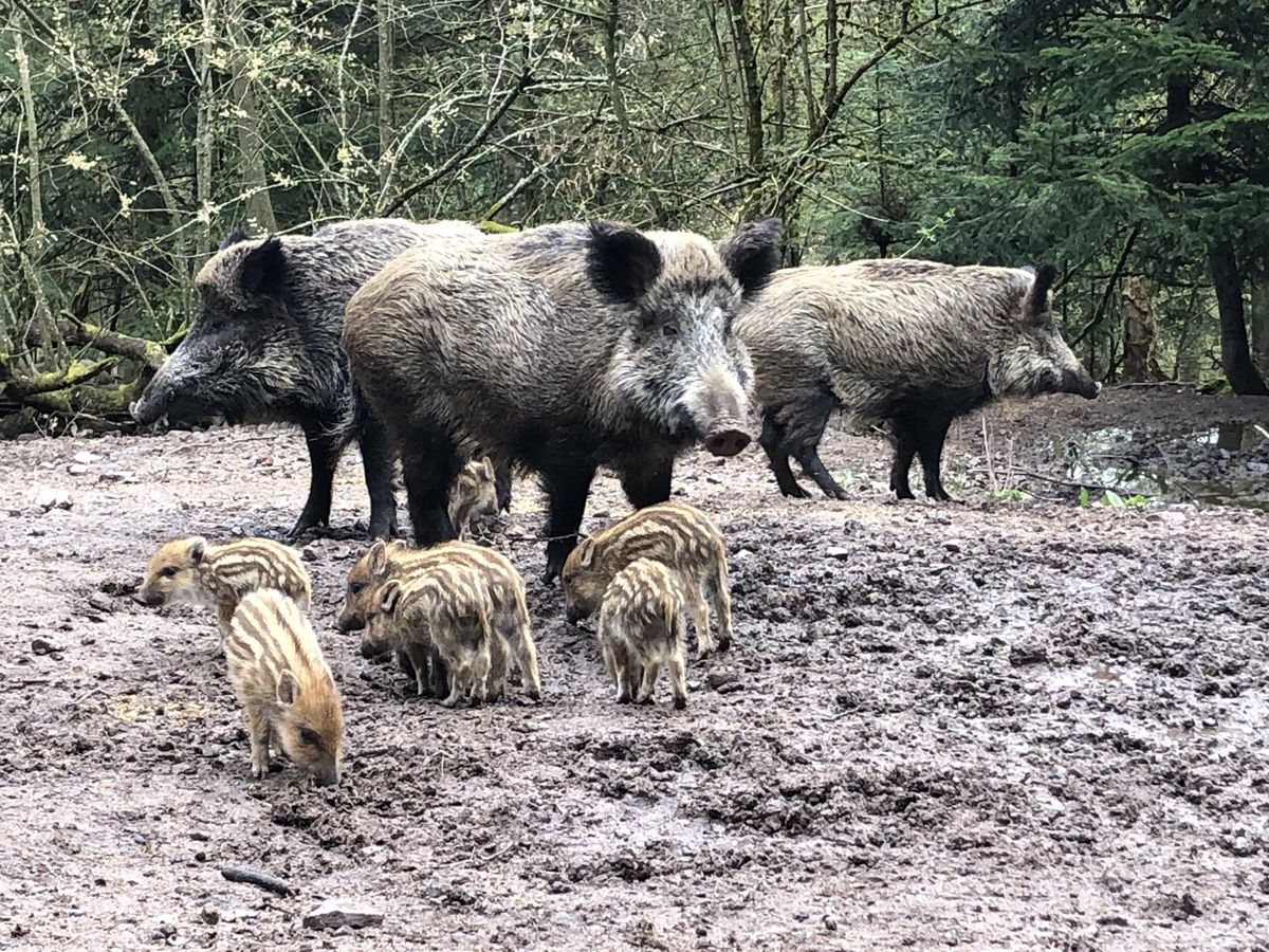 „Vor rund drei Wochen sind acht Frischlinge auf die Welt gekommen, die jetzt schon putzmunter hinter der Bache, ihrer Mutter, hinterherlaufen. Den Kleinen geht es gut, und sie lernen gerade ihre Umgebung kennen.