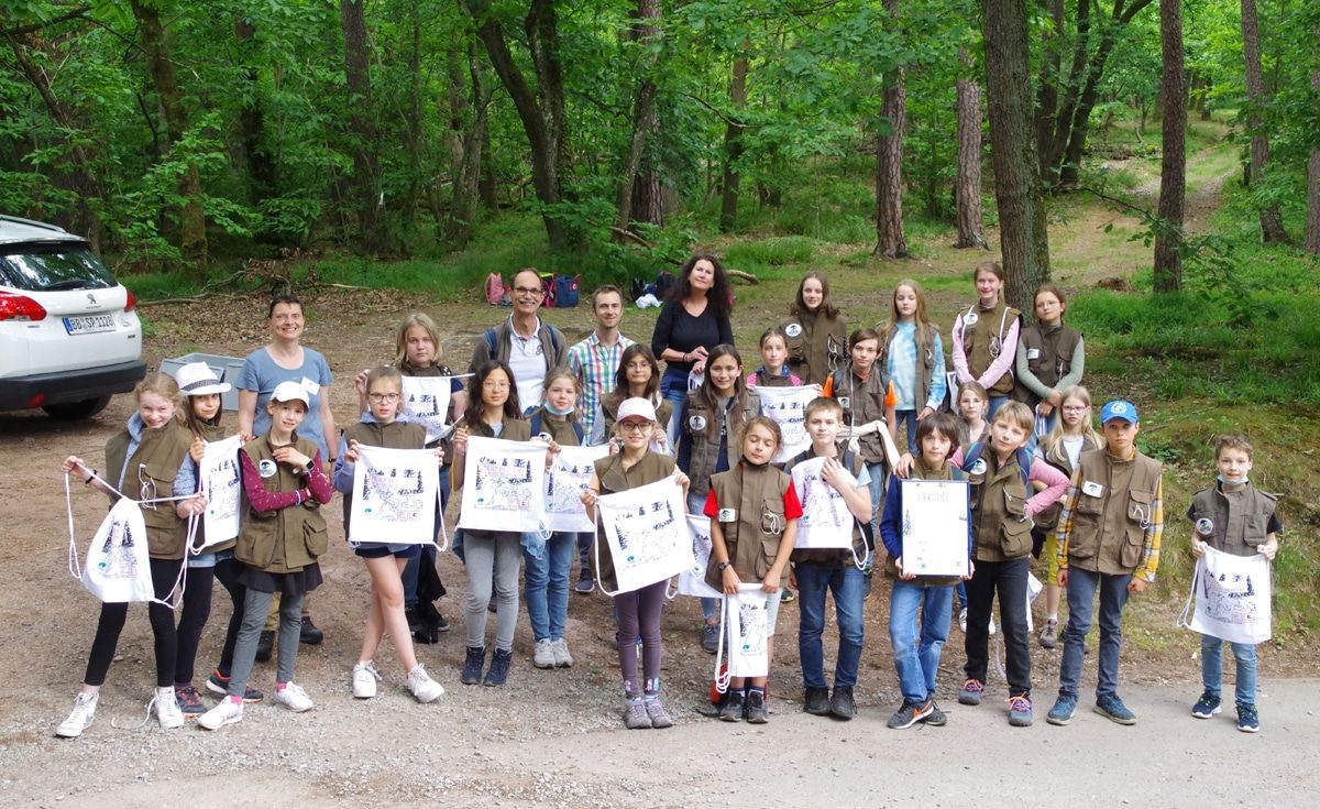 Die Schülerinnen und Schüler aus Baden-Baden erlebten den Naturaktionstag des Naturparks Schwarzwald Mitte/Nord im künftigen Waldklassenzimmer in Gernsbach (Kreis Rastatt). Nach ihrer Ankunft in Gernsbach und einem steilen Aufstieg auf den Galgenberg stärkten sie sich mit ihren Lunchpaketen, während Naturpark-Umweltpädagogin Manuela Riedling die drei vorbereiteten Erlebnisstationen erläuterte. Dann teilten sich die Kinder mit ihren Lehrkräften in drei Gruppen auf und starteten zu ihren Stationen, die jeweils nach 30 Minuten getauscht wurden.