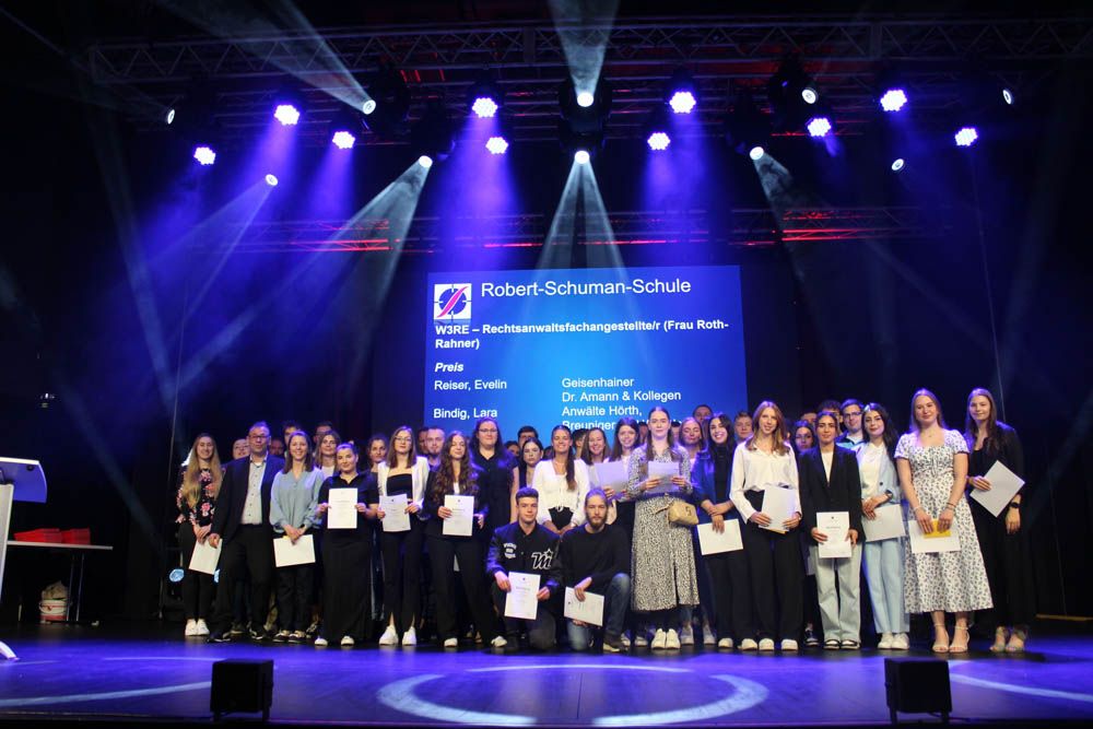 Baden-Baden. Zum Ende des Schuljahres wurden die erfolgreichen Berufsschüler der Robert-Schuman-Schule auf der Event-Akademiebühne verabschiedet. Als Vertreterin der Schule begrüßte Theresa Schäfer die zahlreich erschienenen Gäste, darunter Absolventen, Ausbilder, Eltern, Freunde und Kollegen und führte professionell durch die Verabschiedung.