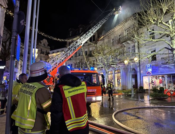 Baden-Baden. Am Samstagabend, 7. Dezember 2024, ist die Feuerwehr Baden-Baden um 18.08 Uhr zu einem Dachstuhlbrand in der Lichtentaler Straße in der Innenstadt von Baden-Baden gerufen worden.