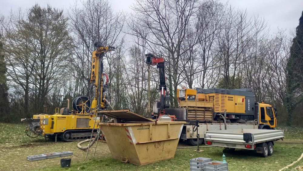 Erste Probebohrungen für ein Nahwärmenetz im Denzlinger Stadtpark wurden 2023 durchgeführt und lieferten vielversprechende Ergebnisse.