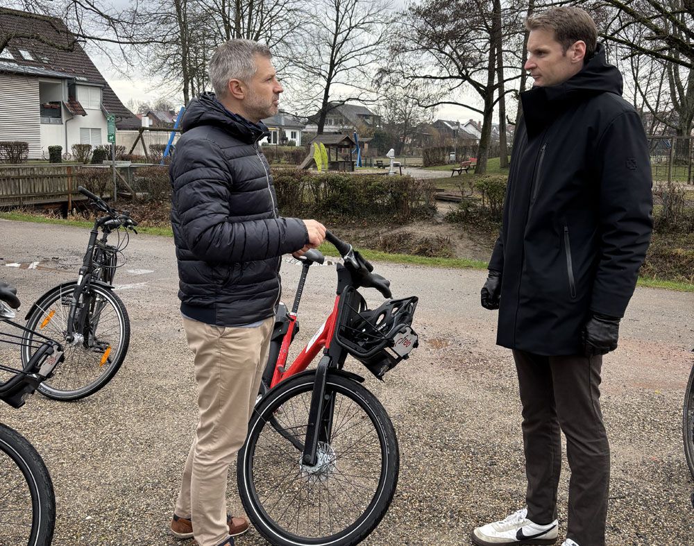 An der frischen Luft statt im Dienstzimmer: Zum Antrittsbesuch traf sich der Bundestagsabgeordnete Yannick Bury mit Bürgermeister Kevin Schüller zu einer gemeinsamen Radtour durch Vörstetten. Dabei zeigte Schüller, welche Themen die Gemeinde aktuell bewegen und welche Projekte in den kommenden Jahren anstehen