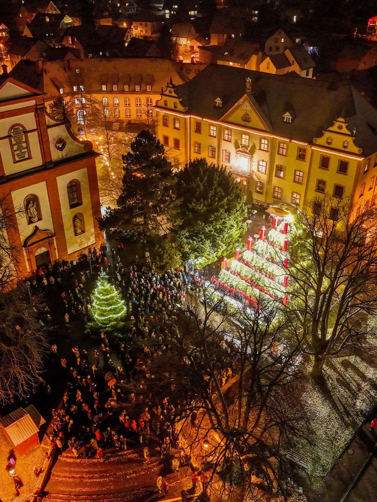 Ein feiner Weihnachtsmarkt vervollständigt bei einem Rundgang inmitten einer grandiosen barocken, historischen Stiftskulisse das neue Weihnachtserlebnis der Region. Der Stadtfestverein als Veranstalter, unterstützt durch die Stadt Waldkirch, hält kleine kulinarische Köstlichkeiten und ein Winzerglühwein bereit. Ein Besuch der Weihnachtsstadt Waldkirch lohnt sich, von der Breisgau Metropole Freiburg sehr gut mit der S-Bahn erreichbar. Info: www.singender-weihnachtsbaum.de