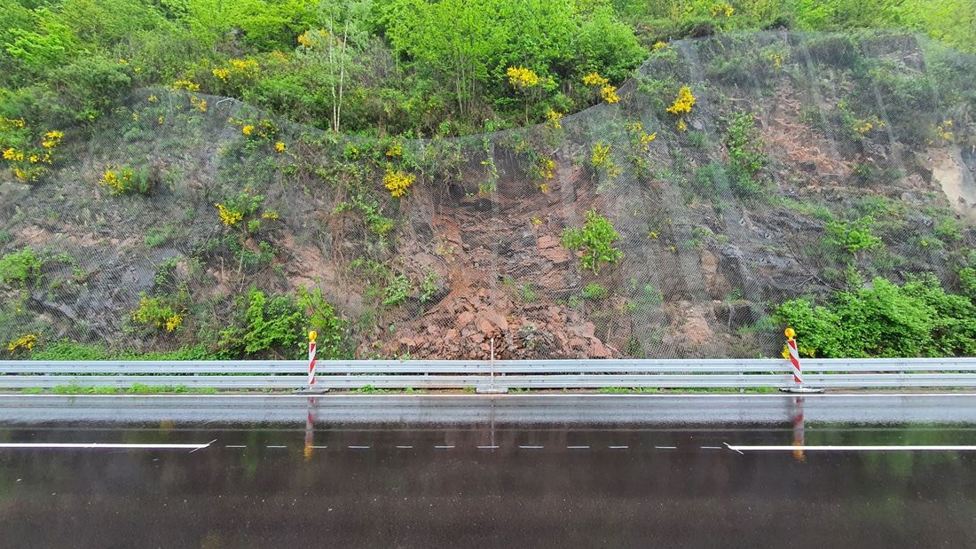 Aufgrund der großen Massen des abgegangenen Felsens und der Gefahr von Nachrutschungen, die vereinzelt auch auf die Fahrbahn gelangen können, hat die Straßenbauverwaltung umgehend Sofortmaßnahmen veranlasst. Der betroffene Fahrbahnbereich ist aktuell halbseitig mit einer Ampelregelung gesperrt.