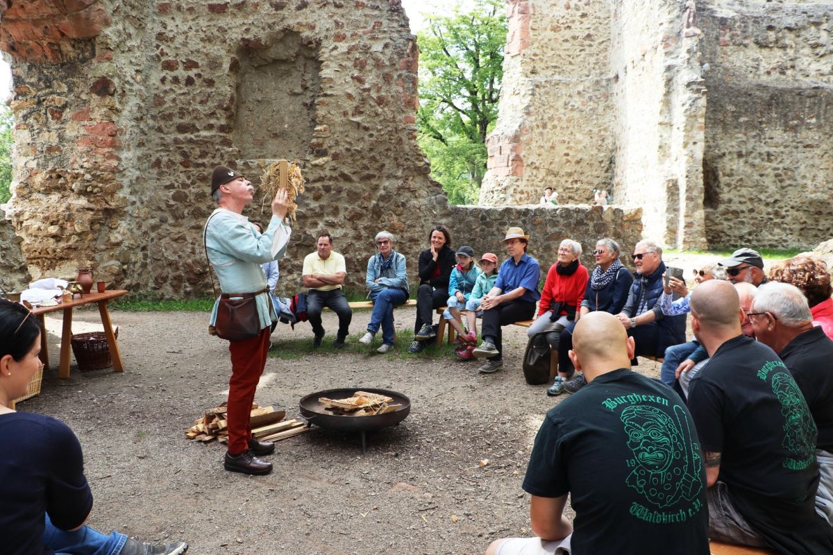 Oben an der Burg angekommen, wurde die Gruppe bereits vom Türmer (Thomas Kern) erwartet, der gemeinsam mit seiner Frau, der Burgköchin (Barbara Kern), eine kleine Einführung in die Geschichte der Burg gab. Mit einem anschließenden Vesper klang der Nachmittag gemütlich aus.