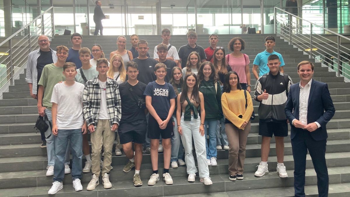 Auf Einladung des CDU-Bundestagsabgeordneten Yannick Bury haben Schülerinnen und Schüler der Realschule Kollnau den Bundestag besucht und mit Bury über den Alltag eines Abgeordneten, die Arbeitsweise des Bundestages und aktuelle politische Fragen diskutiert