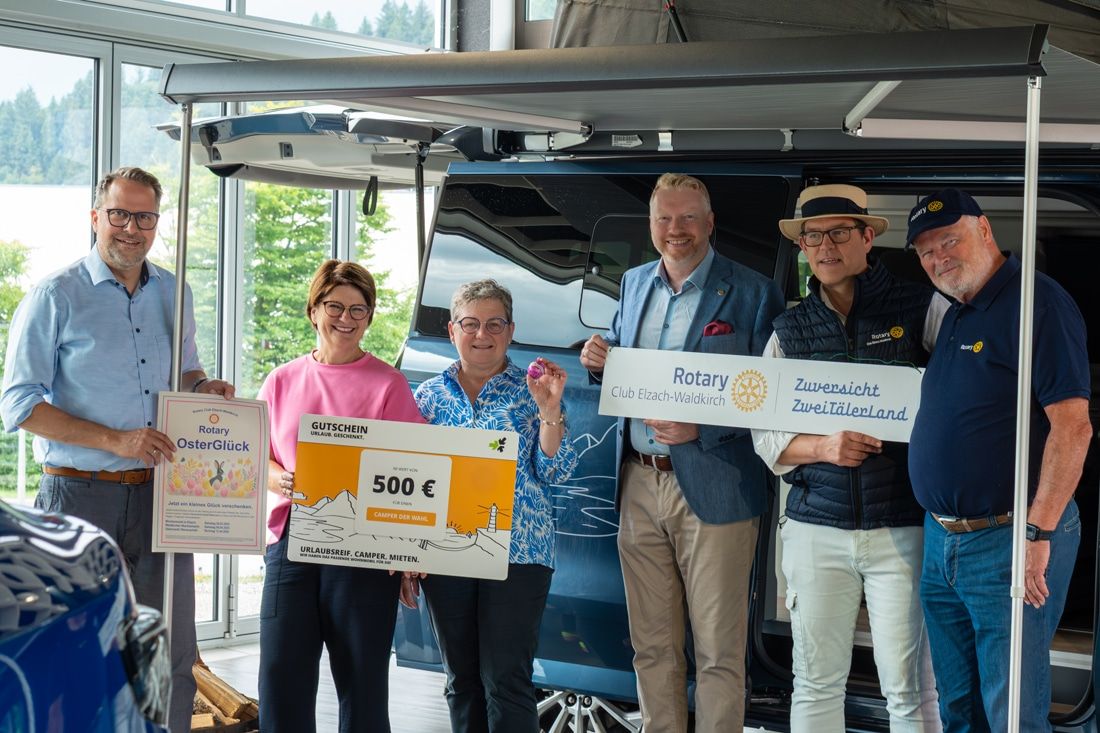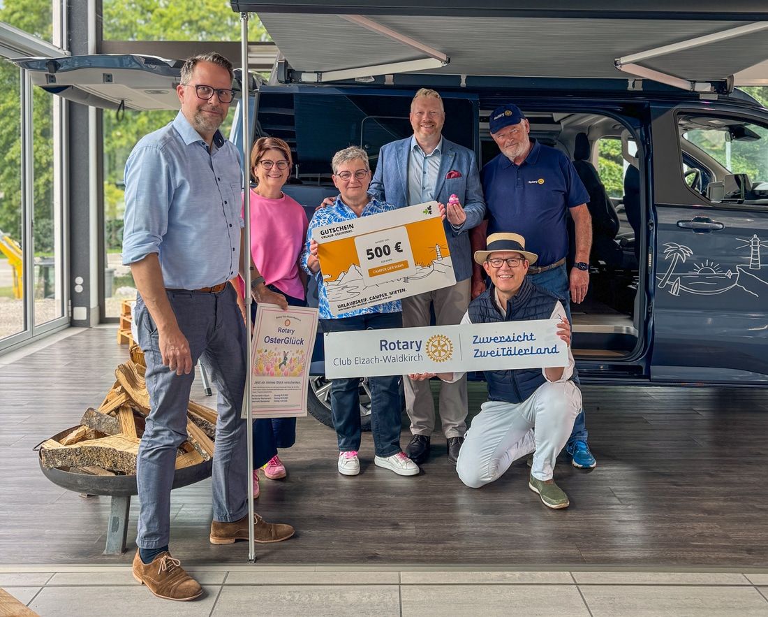 Pünktlich zum Ferienstart durfte sich Frau Ute Volk aus Waldkirch über den Hauptgewinn der diesjährigen Osterglück-Aktion des Rotary Clubs Elzach-Waldkirch freuen: einen Gutschein für ein Wochenende im Wohnmobil der Grünen Flotte - eine Marke des Autohaus Schmid Waldkirch.