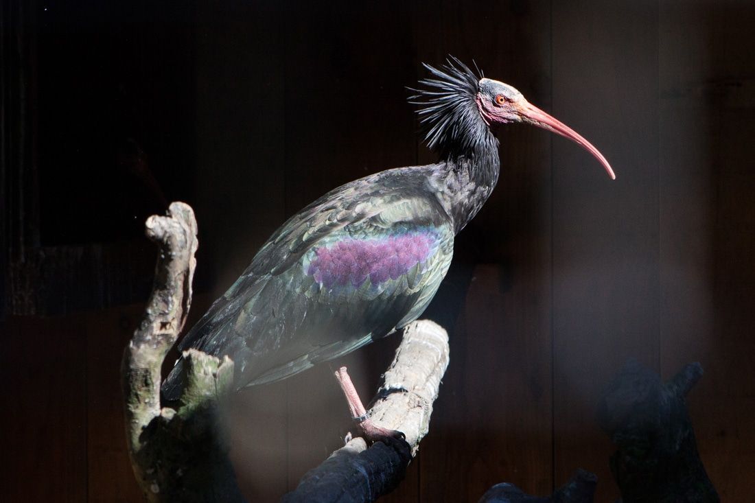 Das Gefieder der Waldrappe schillert in der Sonne bunt.