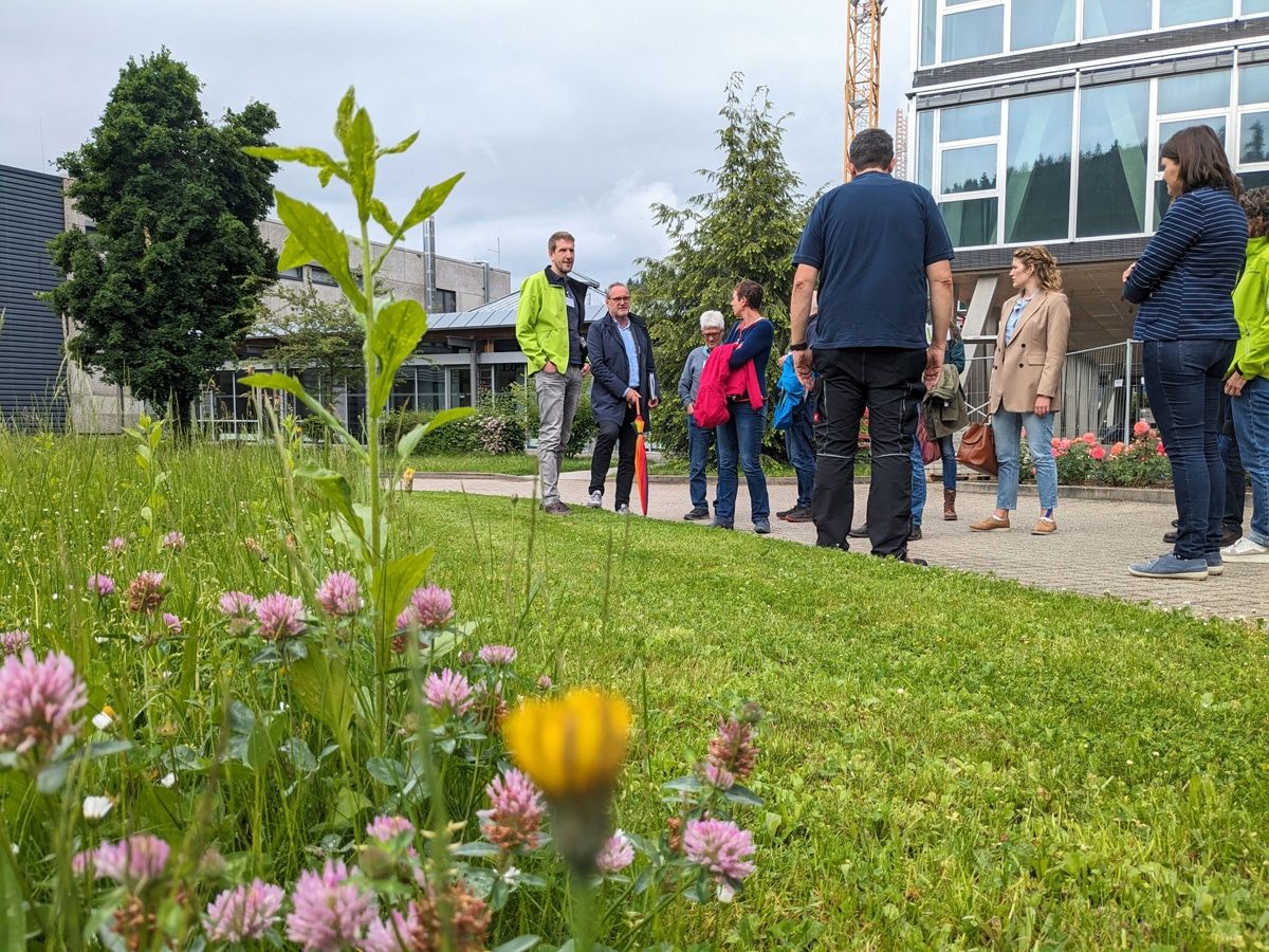 Firmengelände und Biodiversität – dass dies eine gewinnbringende Kombination ist, zeigte das Sensorunternehmen SICK in der vergangenen Woche an den Standorten in Waldkirch und Buchholz. Zahlreiche interessierte Unternehmerinnen und Unternehmer aus dem Südschwarzwald nutzten die Chance, umfangreiche Einblicke in die „BioDiv@SICK-Initiative>“ des Betriebes sowie in die Kampagne „Blühende Unternehmen“ zu erhalten und sich intensiv über bestehende oder geplante eigene Strategien auszutauschen.