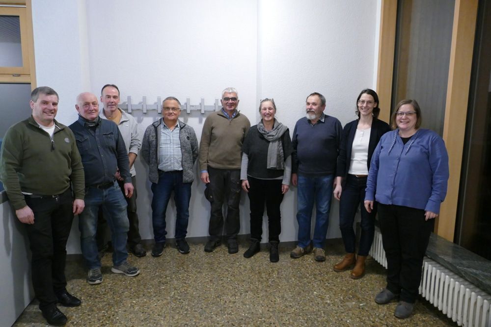 Von Links: Winfried Drayer (Ortsvorsteher), Martin Hoch, Martin Kury, Josef Schätzle, Klemens Doll, Barbara Kusz (ehemalige Ortsvorsteherin), Albert Drayer (Vorstandsvorsitzender), Theresa Möhnle und Veronika Akintschin (Amt für Flurneuordnung)