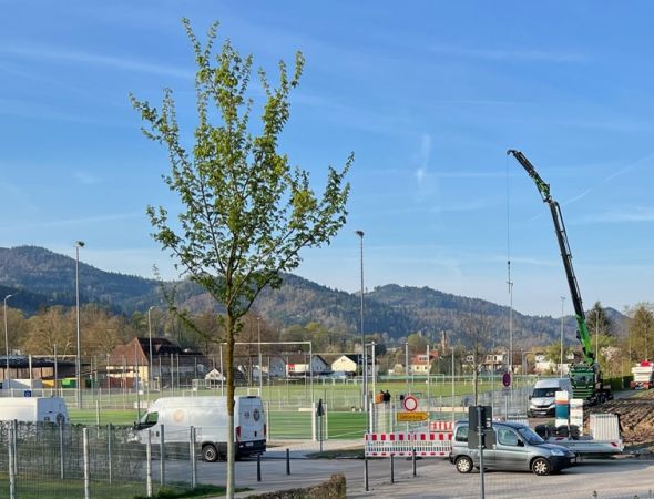 Die Arbeiten am Baugebiet Ebertle II in Waldkirch - Kollnau gehen mit Hochdruck voran. Bis Oktober soll der erste Bauabschnitt komplett an die Bewohner übergeben werden.