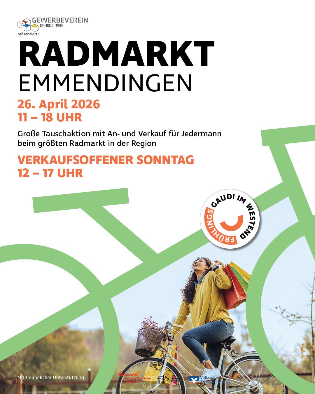 Am Sonntag, den 26. April 2026, wird die Innenstadt von Emmendingen zum Schauplatz eines besonderen Events: Der 32. Radmarkt, organisiert vom Gewerbeverein unter der Leitung von Sarah Rombach, öffnet seine Tore und lädt von 11 bis 18 Uhr zu einem Tag voller Highlights rund ums Thema Fahrrad ein. Parallel dazu können Besucherinnen und Besucher von 12 bis 17 Uhr den verkaufsoffenen Sonntag genießen.