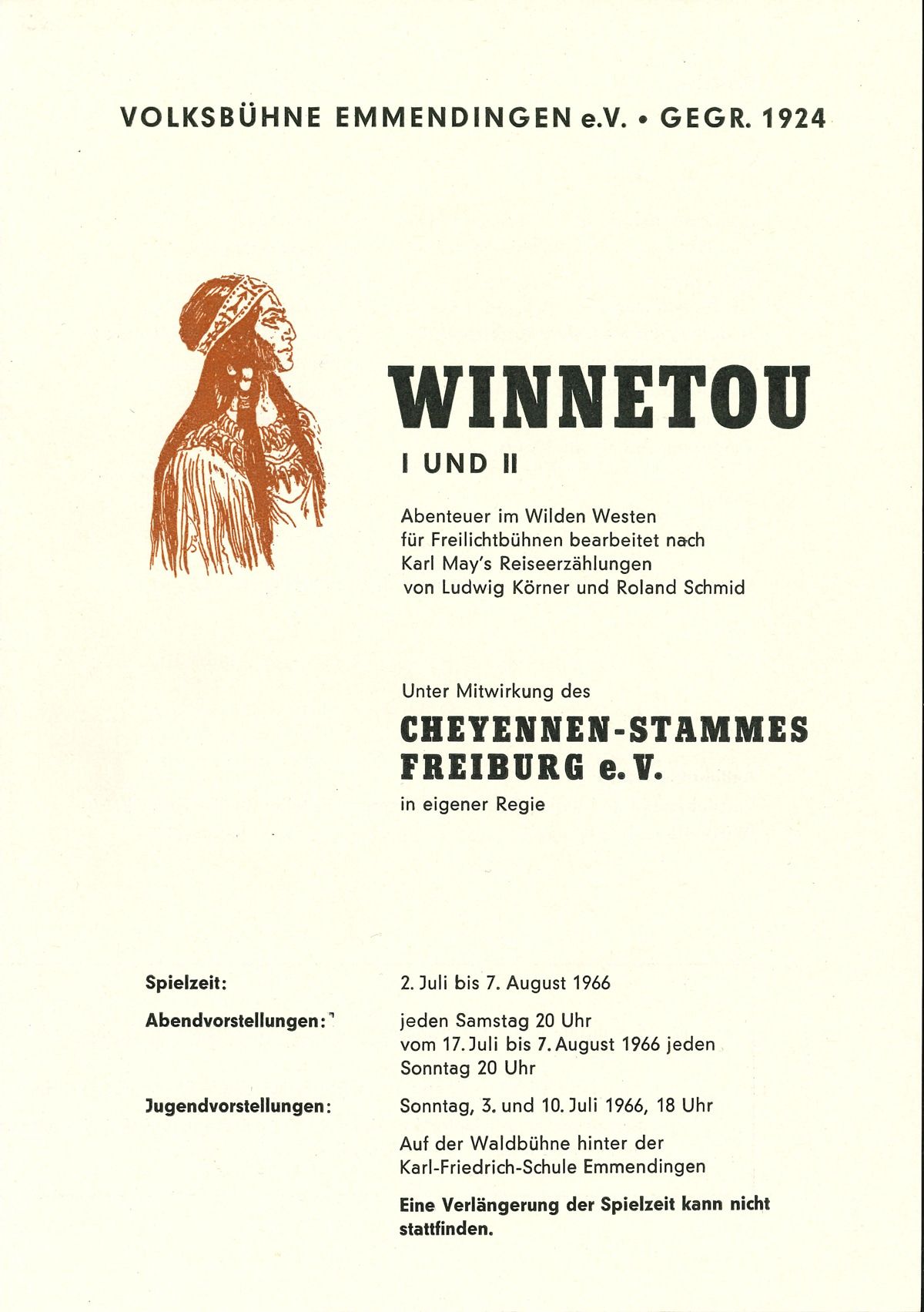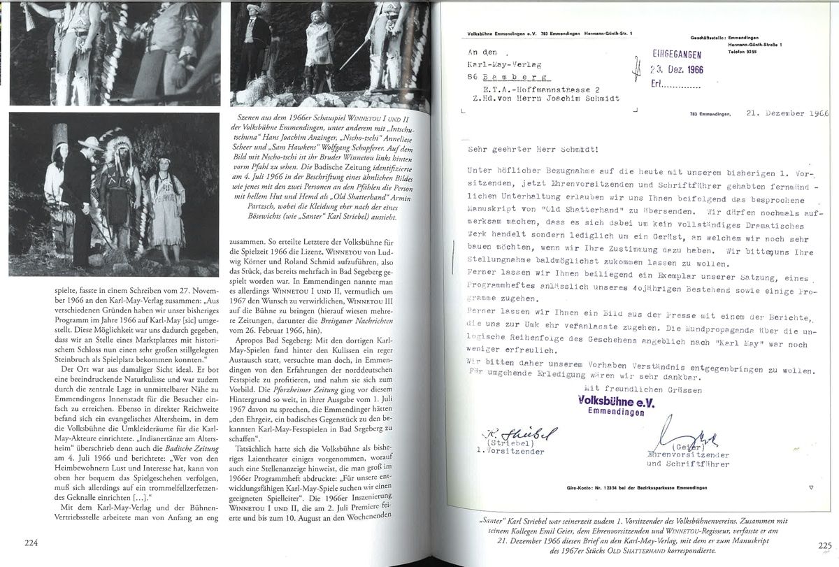 1966 und 1967 standen auf der Waldbühne hinter der Karl-Friedrich-Schule in Emmendingen Inszenierungen nach Karl May auf dem Spielplan. Der soeben erschienene zweite Band der neuen Buchreihe „Karl May auf der Bühne“ aus dem Karl-May-Verlag Bamberg erinnert nun an zahlreiche Theateraufführungen mit Karl Mays Helden wie Winnetou, Old Shatterhand und Sam Hawkens, auch an die Stücke in Emmendingen.