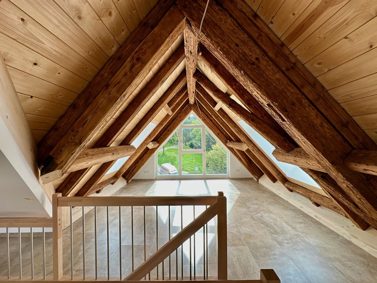 In dem markanten Gebäude in der Dorfmitte Heuweilers sind insgesamt sieben Genossenschaftswohnungen entstanden: Das Erdgeschoss mit zwei Zwei-Zimmer-Wohnungen und einer Drei-Zimmer-Wohnung hat die Gemeinde Heuweiler als Sozialwohnungen angemietet. Zwei Zweizimmerwohnungen mit jeweils 53 Quadratmetern Wohnfläche befinden sich im ersten Obergeschoss. Einen ganz besonderen Charme haben die beiden Maisonette-Wohnungen, die sich mit jeweils 85 Quadratmetern Wohnfläche über das zweite Stockwerk und das Dachgeschoss erstrecken. Hier sorgen die rund 100 Jahre alten sichtbaren Balken im Dachgeschoss für ein ganz besonderes Wohnambiente. Die bodentiefen Fenster im Giebel bieten einen traumhaften Ausblick auf die Felder zwischen Heuweiler und Denzlingen.