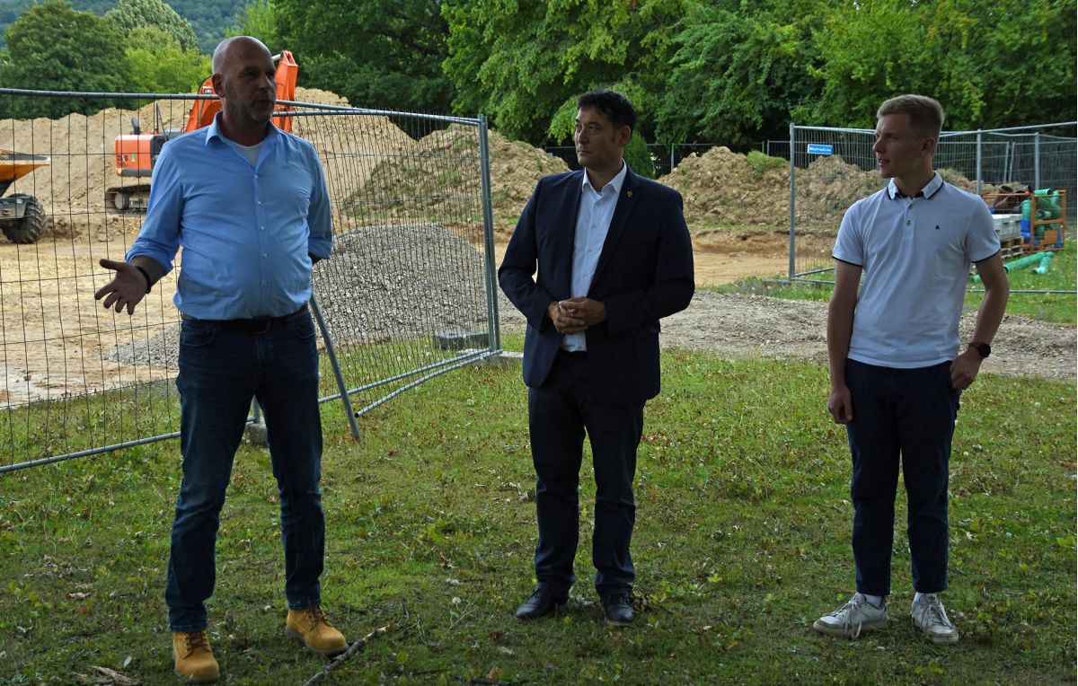 v.l.n.r. Architekt Nicolas Krieg (Planum Sport), Bürgermeister Markus Hollemann, Jugendgemeinderatsmitglieder Jakob Kandziorra