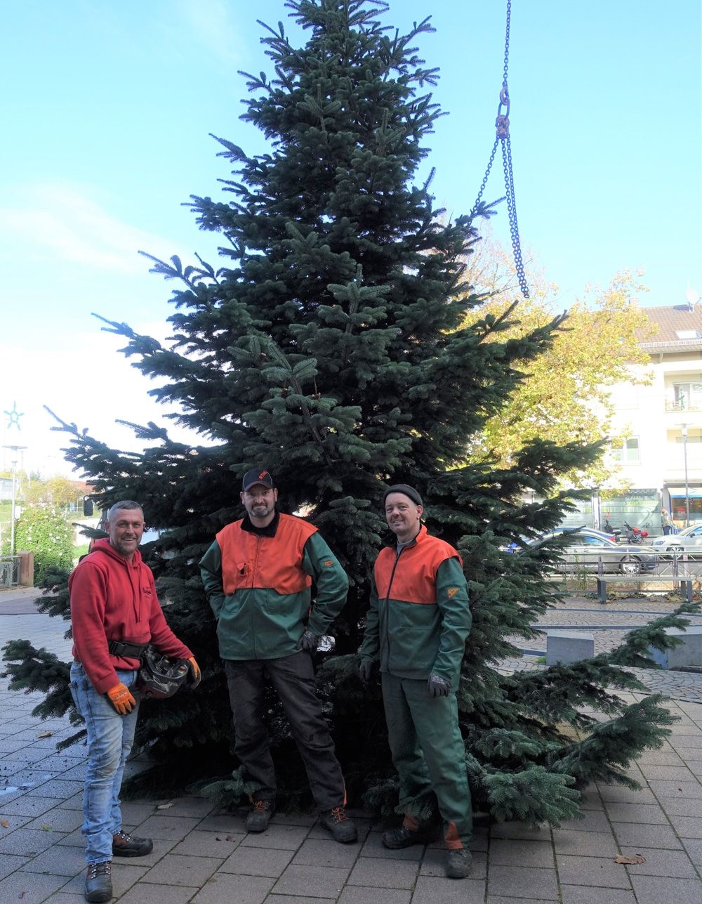 Der erste Advent naht und in der Gemeinde Denzlingen sind die Vorbereitungen für die Weihnachtszeit in vollem Gange. An sieben Plätzen stellt das Team des Denzlinger Bauhofs Tannenbäume auf. Diese leuchten ab diesen Sonntag und sorgen für vorweihnachtliche Stimmung. Drei der Christbäume sind von Bürgern gespendet