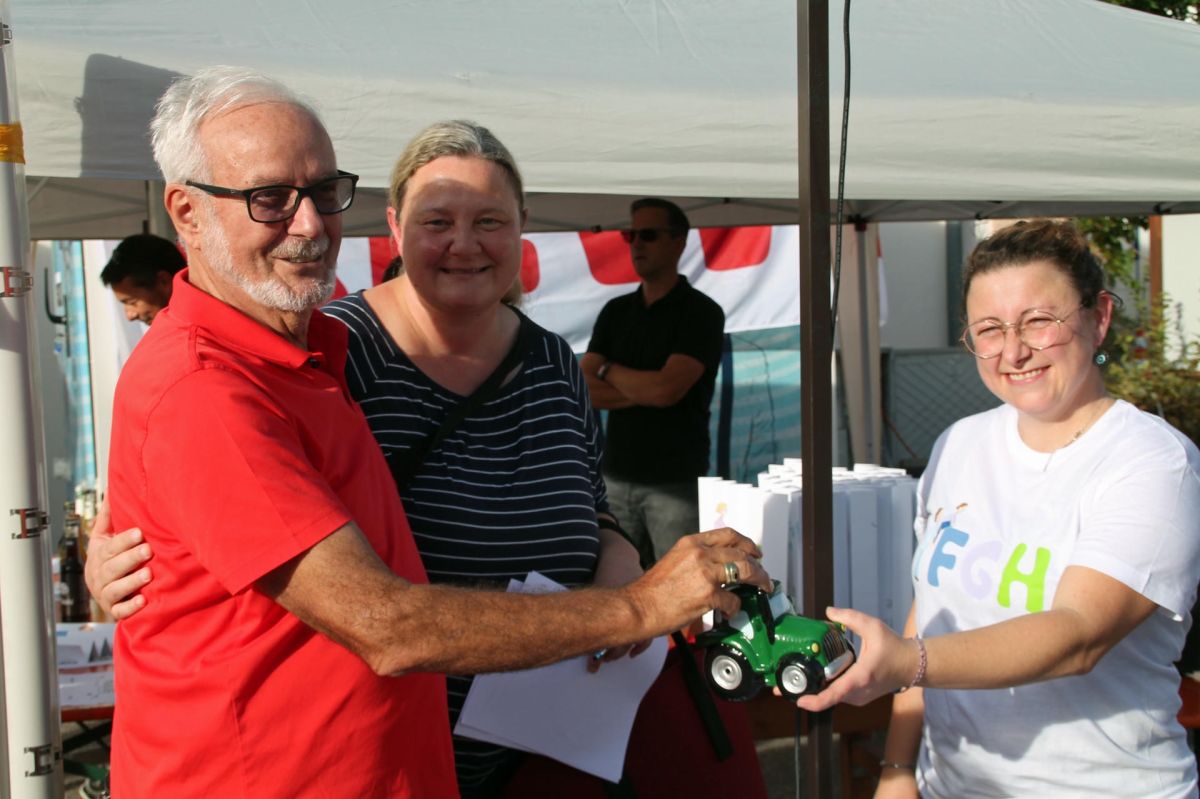 Für den neu gegründeten Förderverein der Grundschule mit Melanie Amann-Brandt an der Spitze war das der Auftakt. An einem Stand verteilten sie Klatschpappe für die Gäste am Straßenrand, wiesen aber auch auf eine Mitgliedschaft im Förderverein hin. Ihr neues Logo, ehrenamtlich von Thorsten Trantow, Vater eines Viertklässlers, erstellt, kam dabei besten zur Geltung. „Seit neun Jahren bin ich an der Schule, die Begrifflichkeit „Förderverein an unserer Schule“ gab es bisher nicht, so Rektorin Sandra Hummelsiep. Sie freute sich sichtlich über die Veranstaltung und den neuen Förderverein und rührte kräftig die Werbetrommel. „Hier ist ja noch eine bessere Stimmung als im Stadion beim SC“, freute sich auch der Rathauschef. Die Kinder skalierten „Herbolzheim, Herbolzheim“ und waren fast nicht zu bändigen. Erstmals präsentiere sich auch der neu gegründete Grundschulchor mit Chorleiterin Carola Himmelseher und Jonas Frieder an der Gitarre.