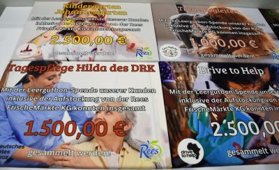 Die Rees FrischeMärkte KG bedankt sich herzlich bei allen Kunden, die mit ihren Leergutbons zur Realisierung dieser Spendenaktion beigetragen haben. Ein besonderer Dank gilt auch der Familie Rees, deren zusätzliche Aufstockung der Spendensumme dieses großartige Ergebnis erst möglich gemacht hat.