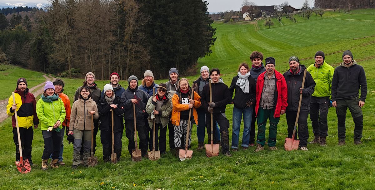 18 Freiwillige halfen bei der Umsetzung einer neuen Agroforstfläche in Freiamt