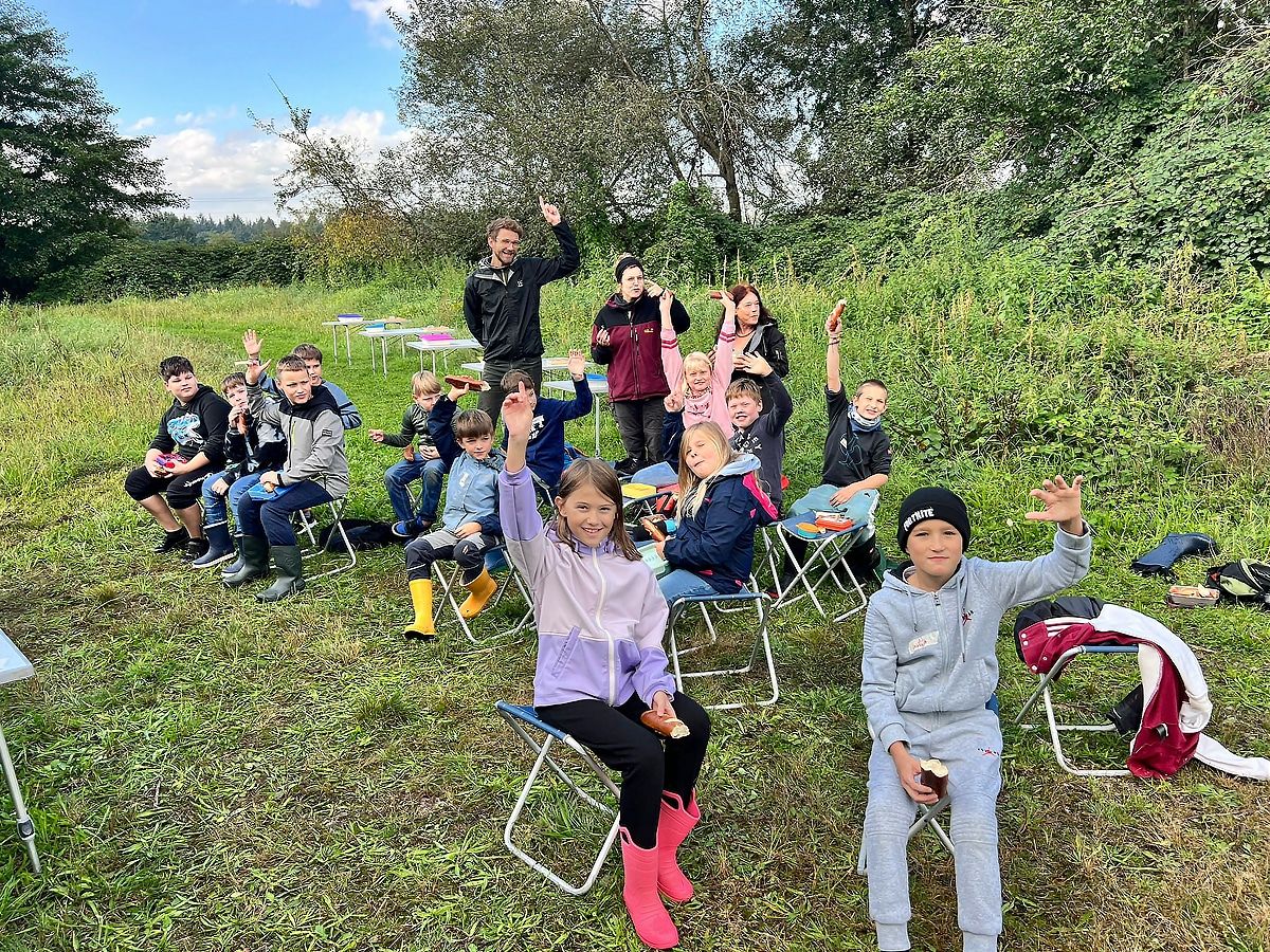Kinder der Fritz-Boehle-Grundschule in Emmendingen zu Besuch im Biotop beim Schmolkareal
