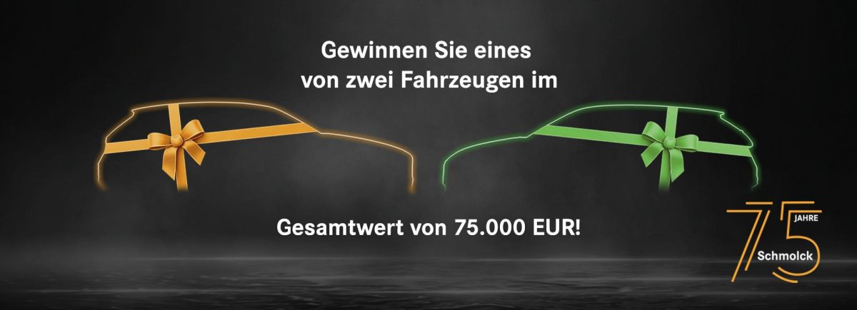 Unter dem Motto: Kaufen Sie dieses Jahr ein Fahrzeug von Schmolck und sichern sich Ihre Teilnahme an der großen 75 Jahre Verlosung verlost das Autohaus zwei Fahrzeuge im Gesamtwert von 75.000 Euro. Ein Highlight wir die Enthüllung der beiden Fahrzeuge sein ,die Ende dieses Jahres vom Autohaus Schmolck an die jeweiligen Gewinner übergeben werden.