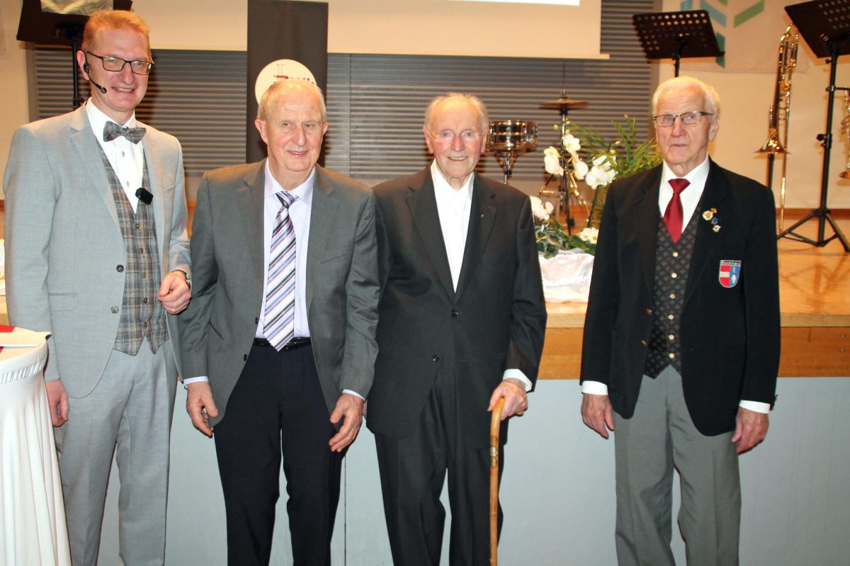 Bürgermeister Thomas Gedemer durfte ganz besondere Ehrungen im Rahmen des Neujahrsempfangs vornehmen, neben ihm v.l. Willi Thomann, Wigbert Steinger und Alfred Glöckle.