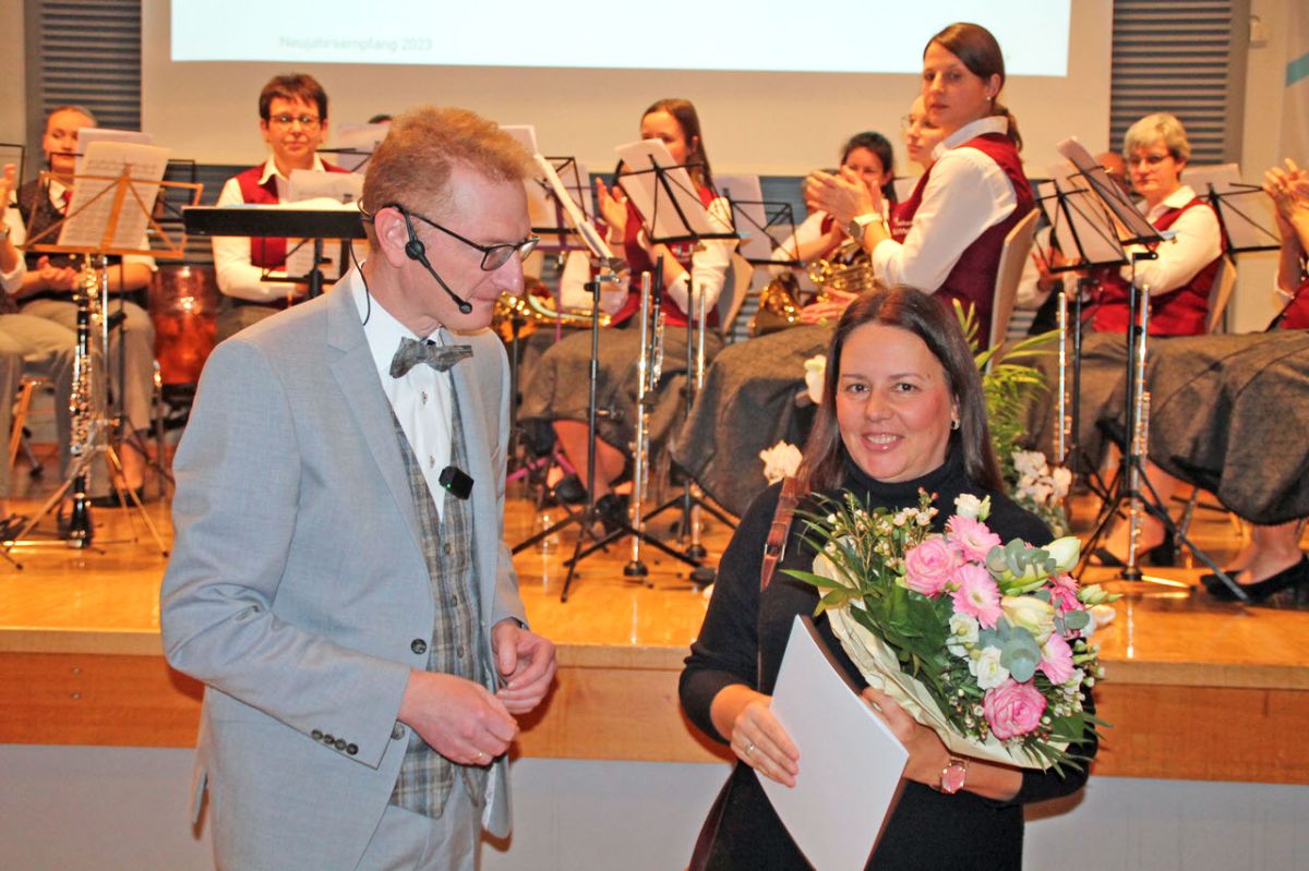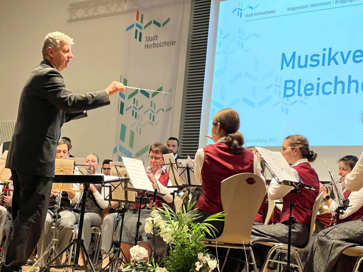 MV Bleichheim: Musikalischer Auftakt des Neujahrsempfangs mit dem Musikverein Bleicheim und der Premiere des neuen Dirigenten Rainer Sachs.