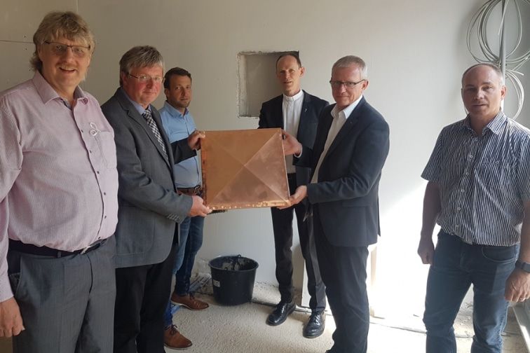 45 stationäre Dauerpflegeplätze in drei Wohngemeinschaften, ein Bürgertreff, sieben barrierefreie 1- und 2 Zimmer Seniorenwohnungen, zwei Mitarbeiterwohnungen und die über einen separaten Eingang im Erdgeschoß erreichbare Tagespflege mit 20 Plätzen stehen für höchsten Wohnkomfort und ein hochmodernes Arbeitsumfeld. Die in Anwesenheit von Bürgermeister Karl Josef Herbstritt und Pfarrer Dr. Franz Reiser eingebrachte Zeitkapsel markiert einen wichtigen Meilenstein im Bauverlauf. Die Fertigstellung der Arbeiten am aktuell größten Bauprojekt im Ort ist für Ende November 2021 geplant. Das Investitionsvolumen mit Objekteinrichtung beträgt rund 9,5 Mio. EUR.