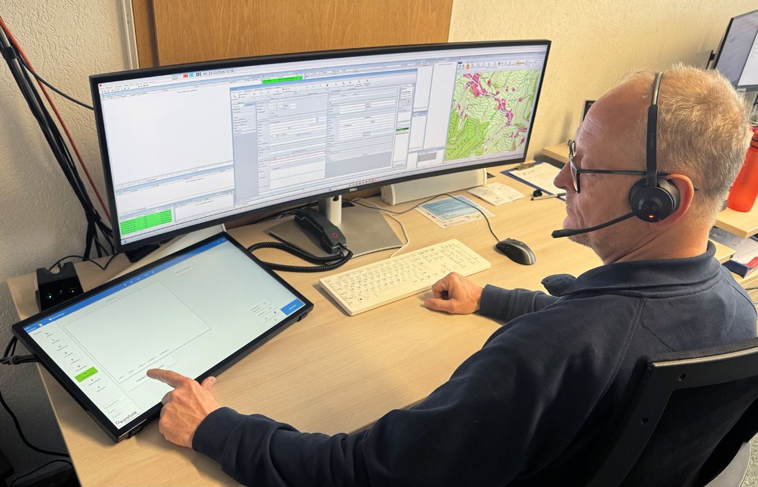 Besonders beeindruckend ist die neue Übersetzungsfunktion: Spricht eine anrufende Person kein Deutsch, kann die Disponentin oder der Disponent per Knopfdruck die Transkription starten. Innerhalb weniger Sekunden erkennt die KI die Sprache – aktuell sind bis zu 40 Sprachen möglich – und übersetzt das Gesagte in Echtzeit. Die Übersetzung ist nicht nur hörbar, sondern auch direkt auf einem Touchscreen mitlesbar. „Das ist aber nur der Anfang, das entwickelt sich rasant weiter“, erklärt Erich Hebner, Leiter der Integrierten Leitstelle in Emmendingen.
