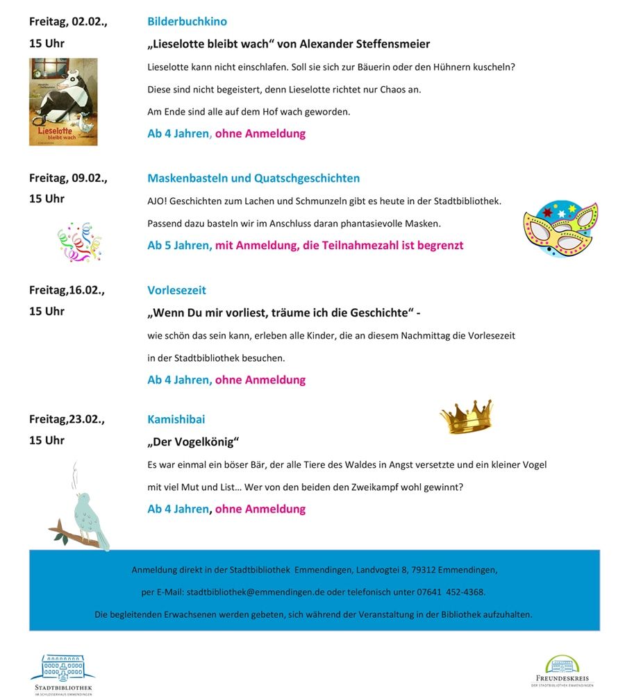 Kinderprogramm der Stadtbibliothek Emmendingen im Februar