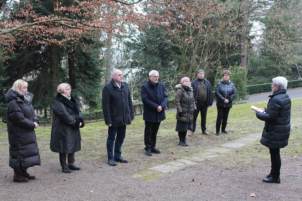 Am 27. Januar 2022, dem 77. Jahrestag der Befreiung des Vernichtungslagers Auschwitz-Birkenau durch Soldaten der Roten Armee, fanden im Rahmen des Gedenkens der Stadt Emmendingen an den Gedenkstelen unterhalb des Jüdischen Friedhofes und des Bergfriedhofes Kranzniederlegungen statt