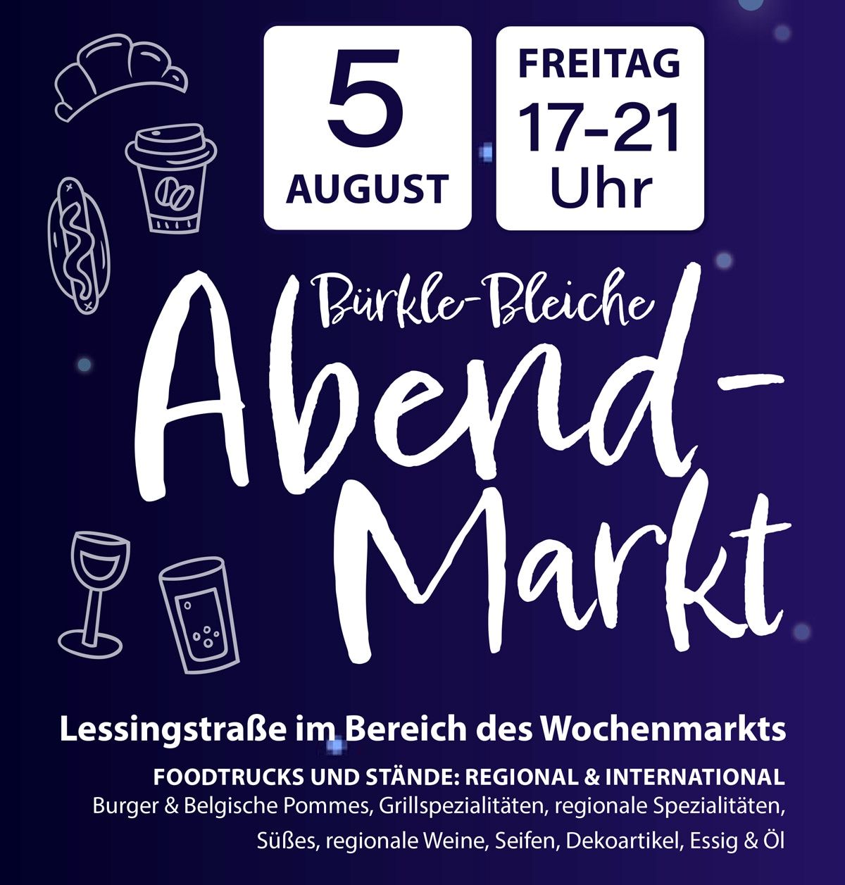 Letzter Abendmarkt Bürkle-Bleiche für dieses Jahr am 5. August