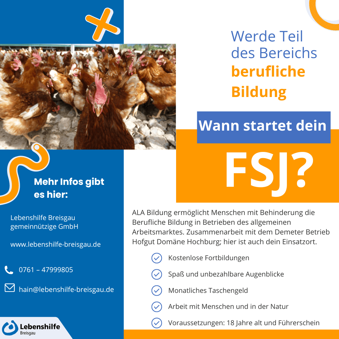 Wir sind eine Klasse im Berufsbildungsbereich der Lebenshilfe Breisgau auf dem Hofgut der Domäne Hochburg. Unser Aufgabengebiet auf dem landwirtschaftlichen biologisch-dynamisch bewirtschaftet Hof ist sehr abwechslungsreich und es gibt immer was zu tun. Sei es die Arbeit in der Natur mit Pflanzen oder mit Tieren, uns ist nie langweilig.