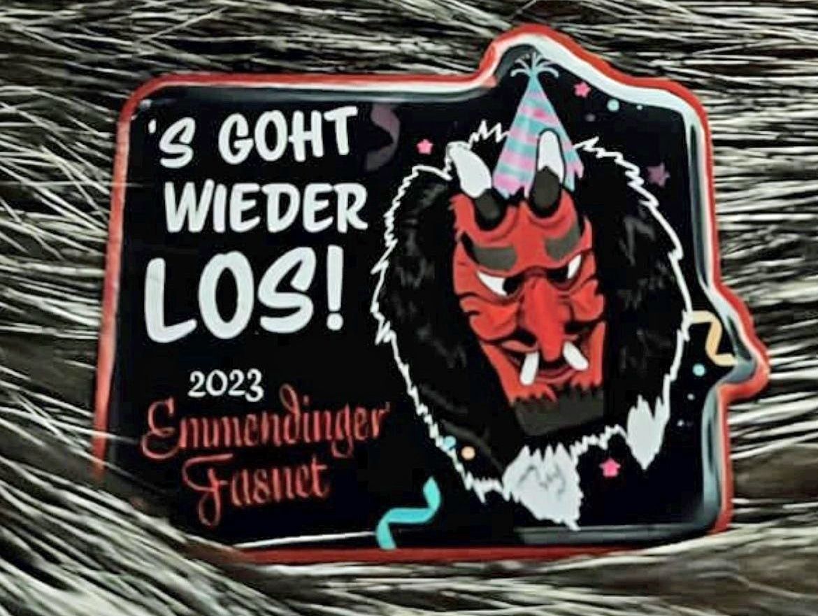 "S`goht wieder los "ist auch das Motto der diesjährigen Plakette, sie berechtigt auch den Zutritt zur Umzugsstrecke. Mit dem Verkauf und Erlös der Plakette wird die Durchführung des Emmendinger Umzug unterstützt. Der Preis pro Plakette beträgt 4€.
