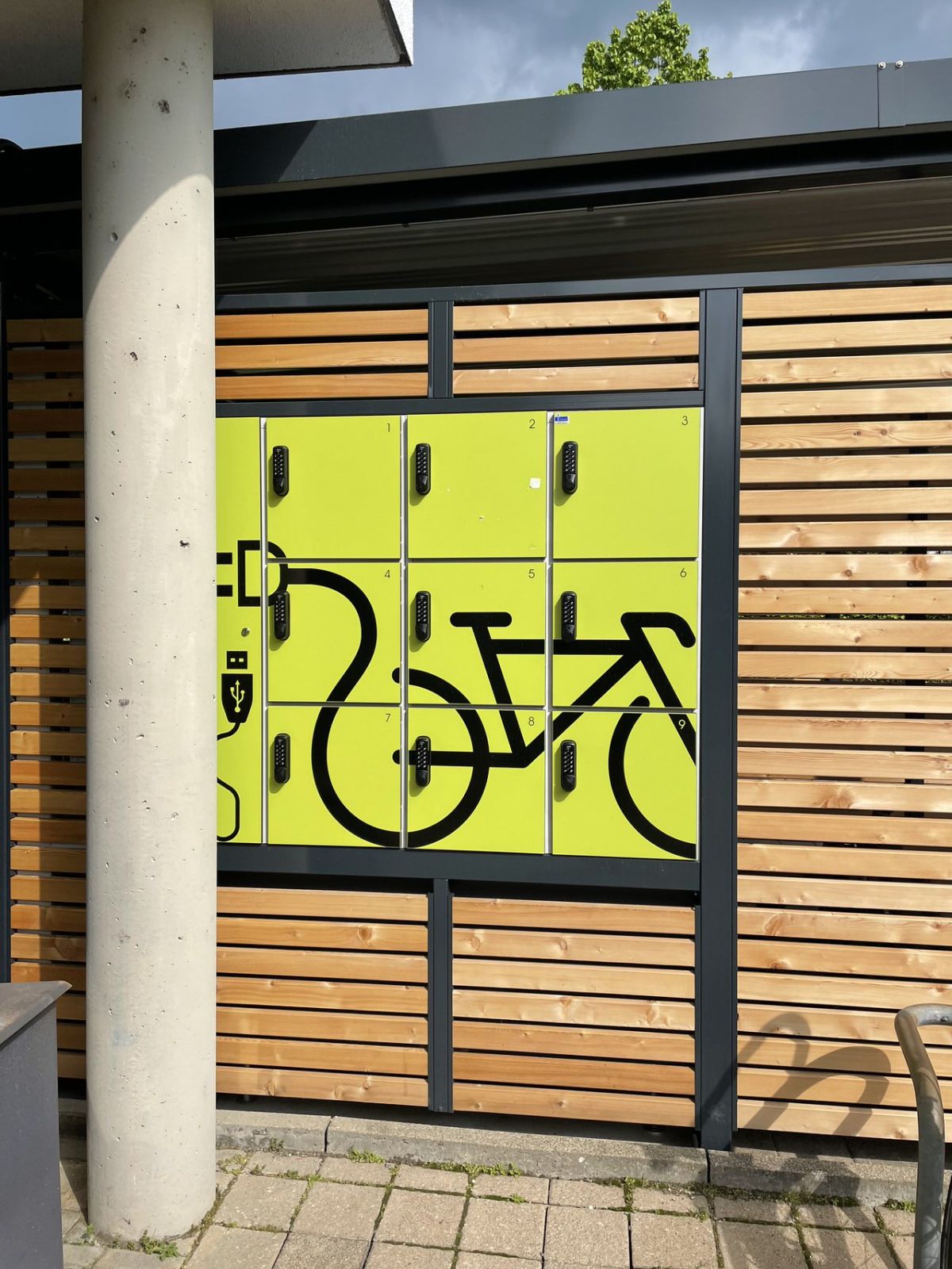 Die Nutzung ist auf 16 Stunden begrenzt. „Integriert sind die kostenfreien Schließfächer in einem Solarcarport mit Stromladesäulen für die Rathaus-Elektrofahrzeuge. In Kürze wird dort auch ein ausleihbares E-Lastenrad stationiert sein“, berichtet Bürgermeister Markus Hollemann. Aus seiner Sicht ist der Standort ideal für Pendler, Bahnhofs-, Rathaus- und Friedhofsbesucher.