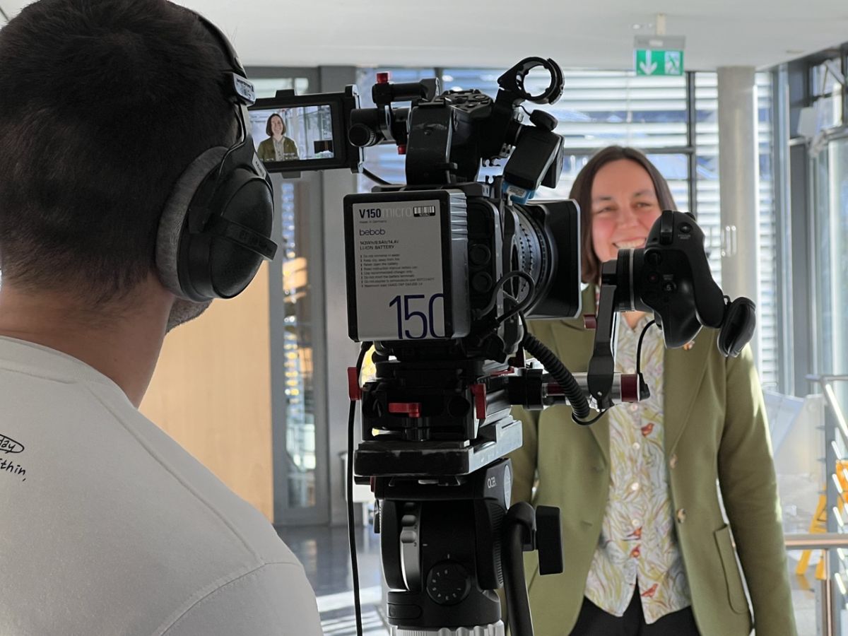 Klimaschutzmanagerin Diana Sträuber im Interview vor der Kamera des RTL. Foto: Melanie Lackner, Gemeinde Denzlingen.