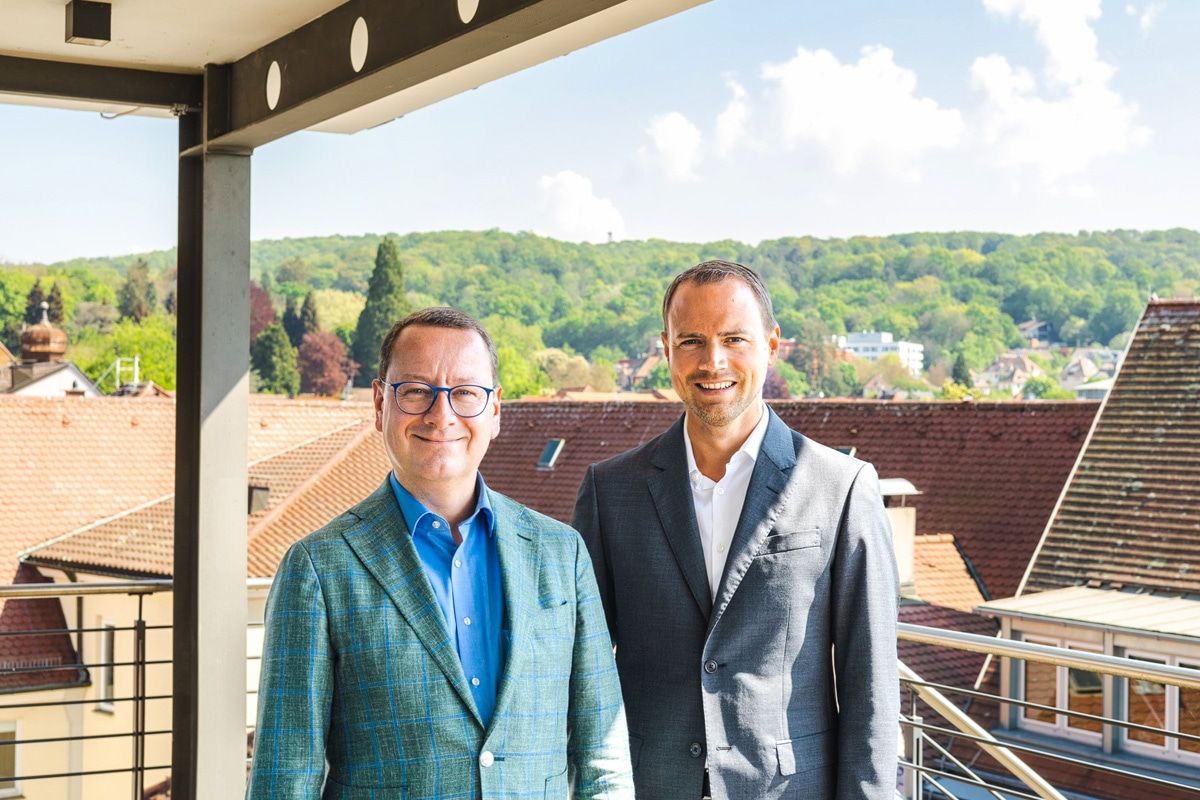 Volksbank-Vorstand Patrick Heil zusammen mit dem bisherigen Mitarbeiter und neuen Bürgermeister von Gutach Sebastian Rötzer im Rahmen einer kleinen Feierstunde zu dessen Verabschiedung (Bild v.r.n.l.).