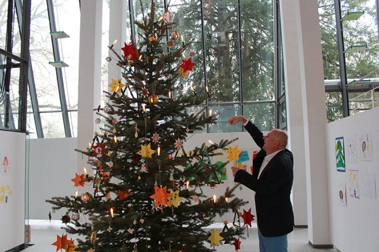 Traditionell wird dieser von den Vorschulkindern der städtischen Kitas bestückt. Da wird im Vorfeld gebastelt und gewerkelt und dann in der Woche vor dem ersten Advent gemeinsam mit den Mitarbeitenden der Kitas und Oberbürgermeister Stefan Schlatterer gemeinsam der Schmuck angebracht.