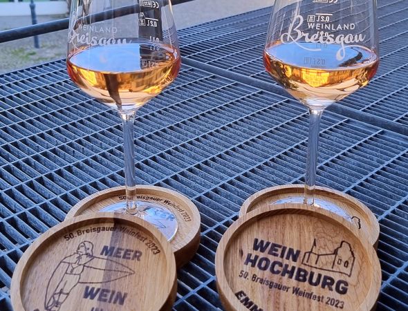 Anlässlich des 50-jährigen Jubiläums des Breisgauer Weinfests gibt es dieses Jahr in Emmendingen eine Sonderedition Holz-Untersetzer mit verschiedenen Motiven in begrenzter Auflage