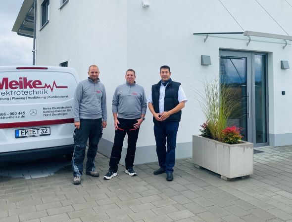 „Der Umzug ist nun abgeschlossen. Die Räder greifen wieder ineinander!“, so Geschäftsführer Philip Maier und Thorsten Meike der Firma Meike Elektrotechnik OHG. Bürgermeister Markus Hollemann besuchte die Firma…