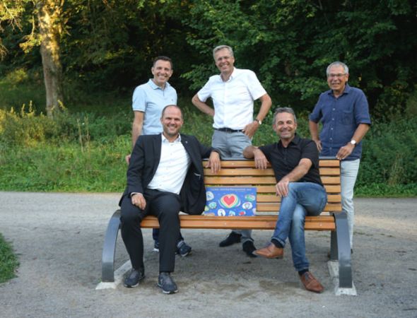 Oberbürgermeister Roman Götzmann nahm im Namen der Stadt eine Sitzbank von Mitgliedern des Lions Club Waldkirch-Elztal entgegen.