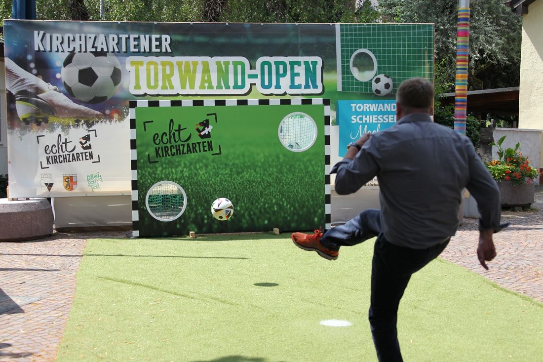 Alle dienjenigen, die ein wenig traurig sind, dass Deutschland bei der Europameisterschaft ausgeschieden ist, dürfen sich noch einmal auf echtes Fußball-Feeling freuen. Nachdem am Samstagmorgen der Black Forest Ultra Gravel in der Fußgängerzone gestartet ist, veranstaltet der Gewerbeverein Kirchzarten ab 11:00 Uhr das große Finale der 1. Kirchzartener Torwand Open. Die Finalisten des Einzelwettbewerbes und im Anschluss die qualifizierten Teams treten beim Torwandschießen noch einmal an.