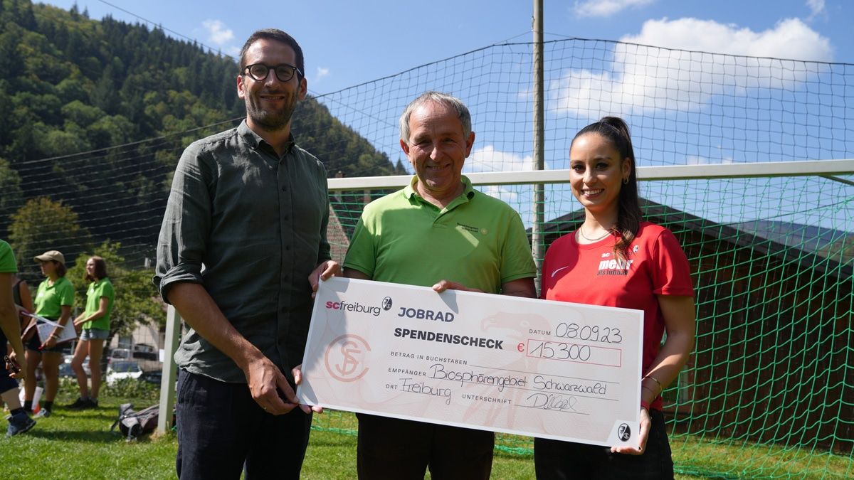 Auch für das UNESCO-Biosphärengebiet Schwarzwald, in dem dank einer Kooperation des SC Freiburg mit der Umweltorganisation WWF der Wildnis-Erlebnis-Pfad am Fuße des Feldbergs realisiert und Anfang September 2020 offiziell eröffnet wurde, gab es beim „Wildnis-Fußball-Tag“ viel Grund zum Feiern. Gemeinsam übergaben die Verantwortlichen des SC Freiburg und seines neuen Hauptsponsors JobRad einen symbolischen Spendenscheck in Höhe von insgesamt 15.300 Euro. Die Spendensumme geht auf den „Aktionsspieltag Klimaschutz“ zurück, den der SC Freiburg bei der Heimpartie gegen den FC Schalke 04 in der Rückrunde der Saison 2022/23 veranstaltet hatte.