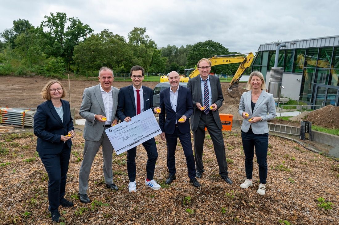Von links: Magdalena Szablewska, Matthias Müller (beide Geschäftsführung FSB), Oberbürgermeister Martin Horn, Staatssekretär Rolf Bösinger, Baubürgermeister Martin Haag, Ulrike Hegar (Leiterin Sportreferat).
